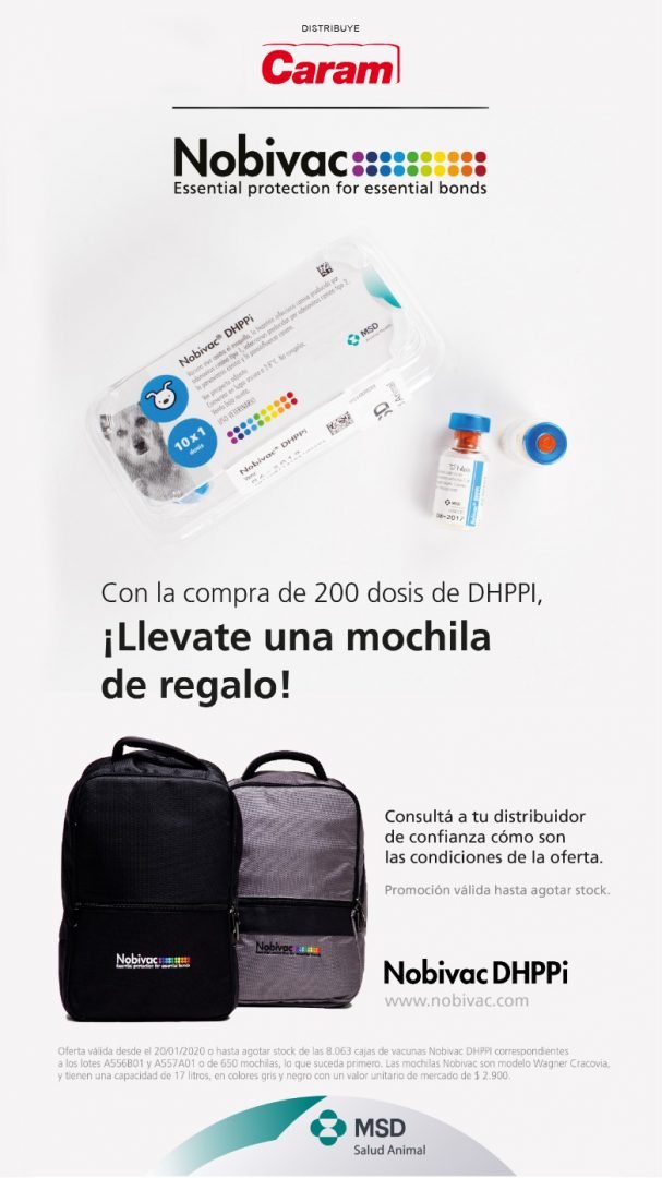 ¡Sumamos a los laboratorios MSD a nuestro equipo y junto a ellos lanzamos esta oferta genial! Con la compra de 200 dosis de Nobivac® DHPPi, llevate una mochila de regalo! Acerca del Producto: Nobivac® DHPPi es una vacuna viva combinada contra el moquillo, la hepatitis infecciosa canina producida por adenovirus canino tipo 1, infecciones por adenovirus canino […]